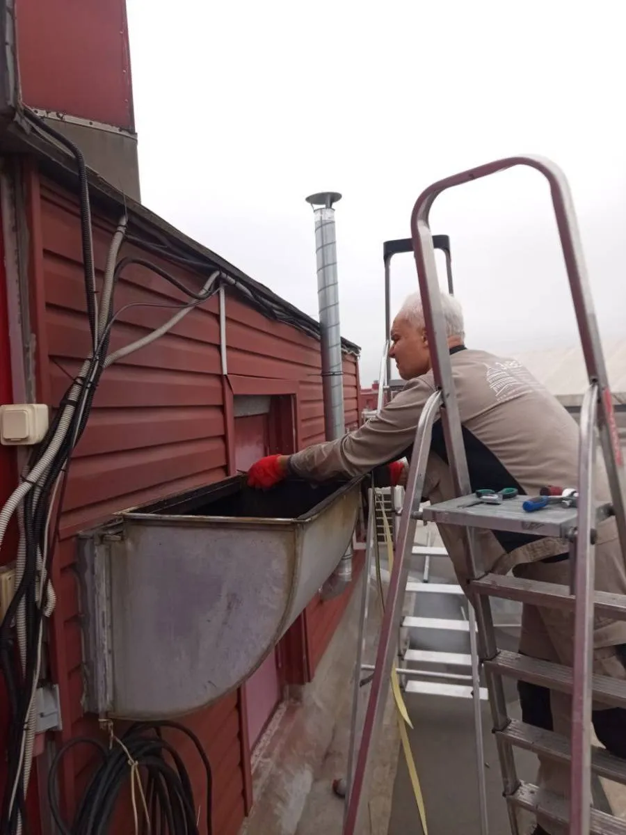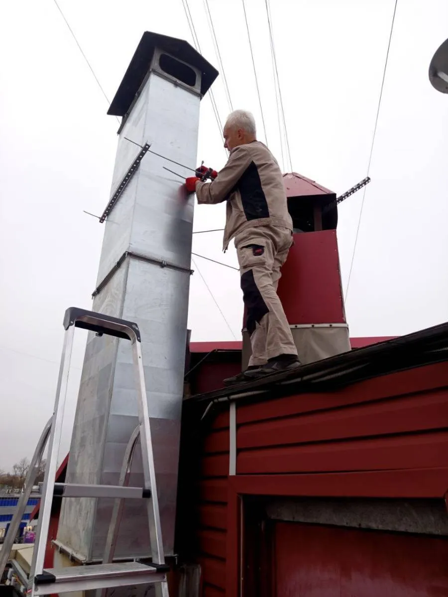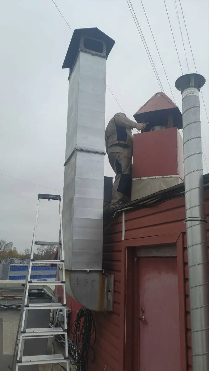 Из-за низкой высоты вытяжной свечи, запахи попадали в соседние офисные помещения. Для решения данной проблемы, произведены работы по увеличению высоты втяжной свечки.